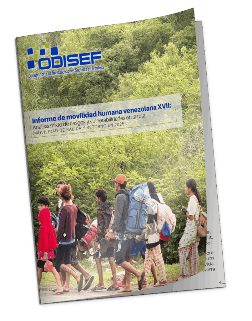 Contenido: durante 2025 la movilidad humana venezolana de personas que caminan para salir o retornar a Venezuela por el corredor fronterizo estado Táchira, Venezuela-departamento de Norte de Santander, Colombia, presentó desplazamientos y flujos activos que exceden las teorías unidireccionales. En este contexto, la dinámica estuvo caracterizada por el perfil de retorno, el cual alcanzó el 83,1 % del flujo total de la movilidad. El Observatorio de Investigaciones Sociales en Frontera (ODISEF) describe detalladamente este fenómeno multidimensional: la mayoría de las personas en movilidad son hombres, mientras que las mujeres lideraron los grupos que viajaban con niños, niñas y adolescentes (NNA). Todos enfrentan una vulnerabilidad intensificada por la falta de documentos de identidad, bajos niveles educativos y la desescolarización en los países de acogida del 69,6 % de NNA retornados. Los datos cuantitativos analizados corresponden a encuestas aplicadas -entre enero y diciembre de 2025- a un total de 1.825 personas retornadas y 582 de salida, todas ellas participantes voluntarias que otorgaron su consentimiento informado. Y en la dimensión cualitativa los relatos se obtuvieron por medio de entrevistas con guion semiestructurado entre el 29 de julio y el 30 de agosto de 2025 en puntos de atención en el estado Táchira. Los sujetos de investigación estuvieron conformados por 14 personas retornadas (4 mujeres y 10 hombres); y 9 personas en movilidad de salida (3 mujeres y 6 hombres).